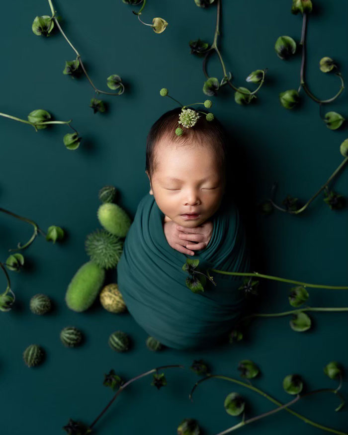 誕生直後の小さな姿を、お花を使った世界観で残します。