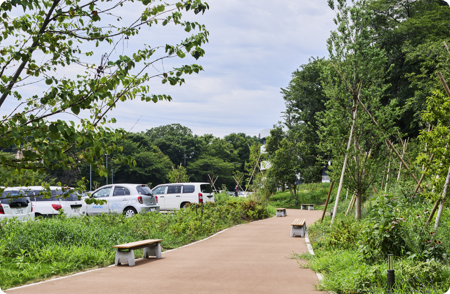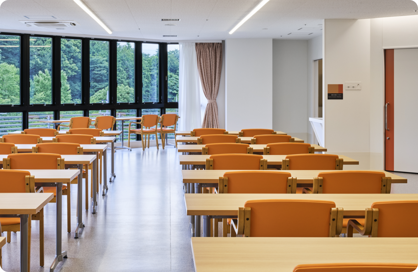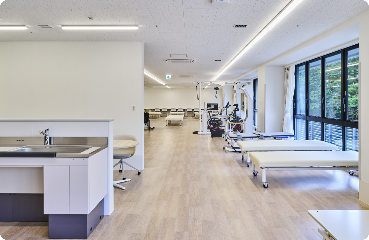 自然に囲まれて、落ち着いた施設環境が特長の旭リハ。