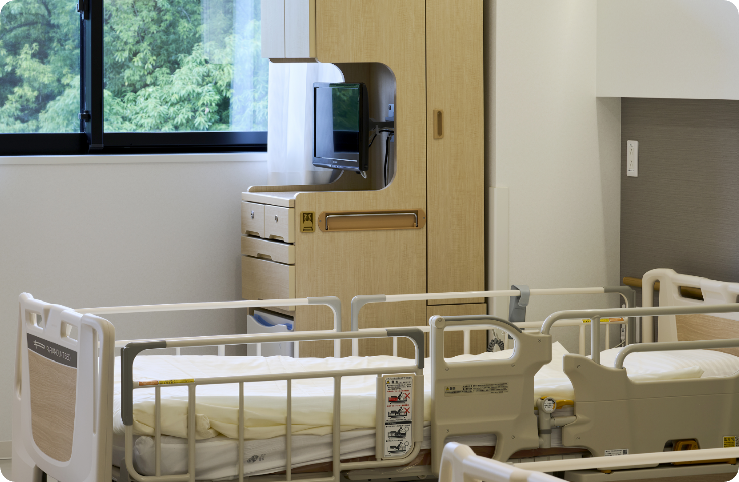 自然に囲まれているため病室からも四季を味わえます。 雨が降った後や晴れた日は緑があでやかで心和みます。